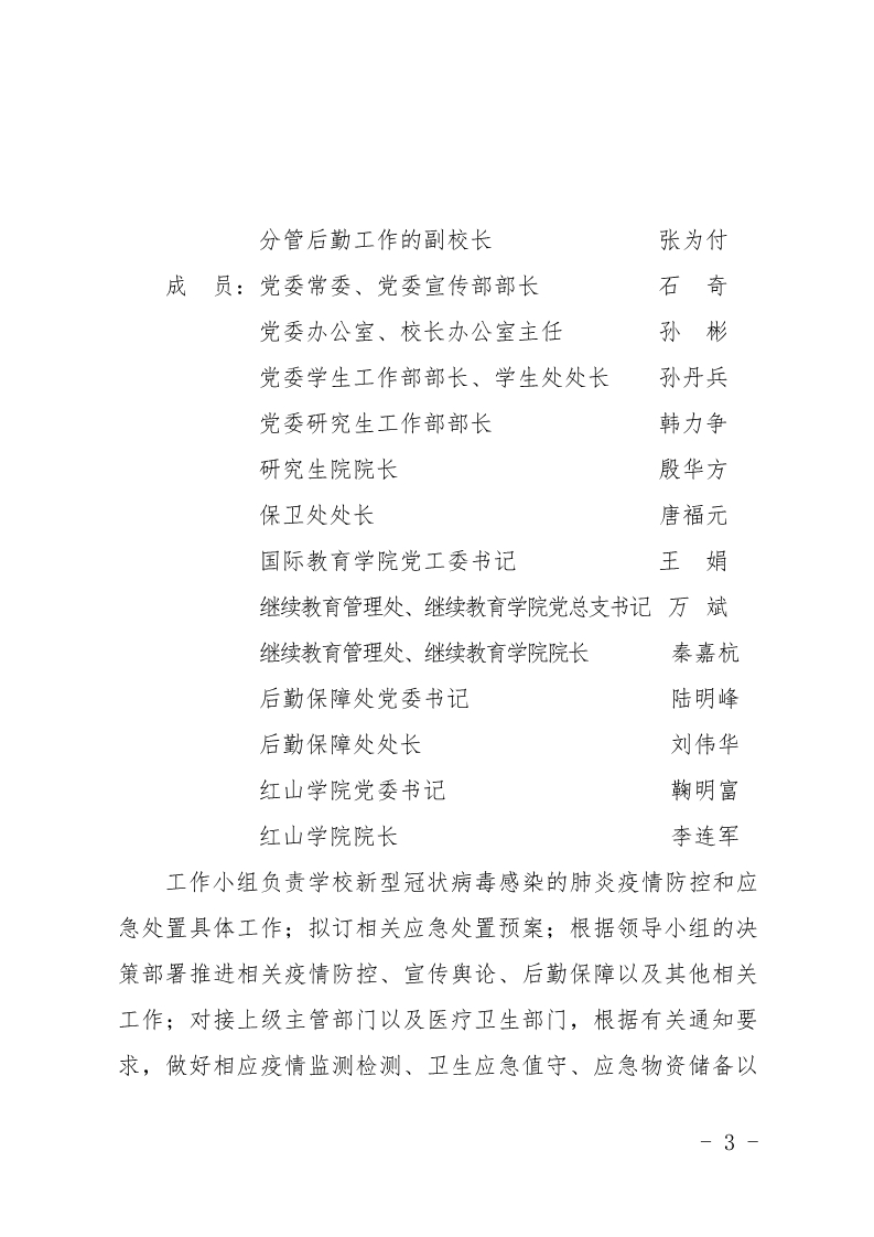 南京财经大学关于成立新型冠状病毒感染的肺炎疫情防控领导小组和工作小组的通知