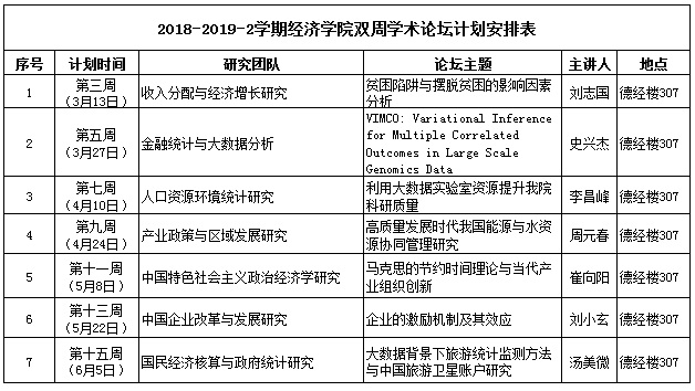 2018-2019-2学期金沙集团1862cc成色双周学术论坛计划安排表
