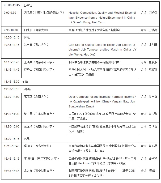 香樟经济学Seminar(南京)2017年第4期主要以劳动经济学、发展经济学为主题,由金沙集团1862cc成色承办。征文期间得到许多学者的大力支持。经过协商,本次讨论会将于2017年9月23日在南京财经大学(仙林校区)食工楼二楼会议室召开,一共汇报11篇论文。欢迎各位同仁一起参与讨论!