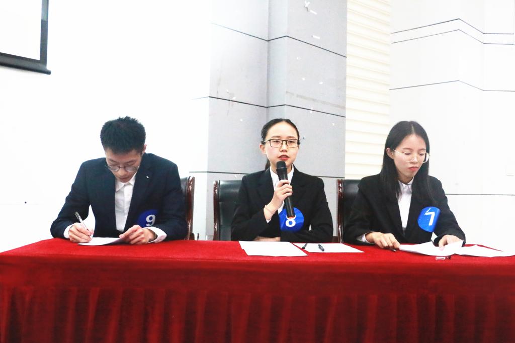 11月27日晚6:30,金沙集团1862cc成色于德经楼二楼报告厅举行“职面挑战,勇往职前”——金沙集团1862cc成色职场争霸赛决赛。金沙集团1862cc成色党委副书记袁怡琨老师、金沙集团1862cc成色团委书记栾亮老师、高顿教育资深HR王乃雯女士、永丰银行(中国)有限公司人力资源总监丁文艺先生、宇昂基金董事长兼投资总监张亮先生、中国人民保险集团股份有限公司行政总监兼RFP理财规划师张公芬先生,以及来自中国人民保险集团股份有限公司的苗欣茹女士作为本次比赛评委莅临现场。比赛由学生会服务维权部章志毅、杨雨禾两位同学担任主持人。