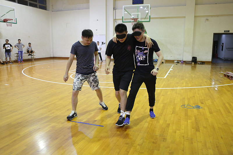 此次素拓课程在第一项活动“经领拳王赛”中拉开帷幕。第一环节“We are family”中,学员们按照分组,在十分钟之内创作队旗、口号并展示造型;第二环节“一箭穿心”,由各队队员用吸管传递皮筋,旨在提升小组成员间合作默契程度;第三环节“盲行障碍赛”要求各队队员在指挥员的指导之下佩戴眼罩依次完成夹气球、绑腿跑、跳绳与投篮项目,以提升团队合作能力;第四环节“同心圆”,全体成员围成一个圈,共同抓紧一条麻绳,各队派一名队员在两名队友的搀扶和保护下在绳上行走,比赛行进速度。最后,此次素拓课程在学员们的心得分享中结束。学员们对此次活动的主办方南京财经大学表示衷心的感谢,向热心助人的南财同学表达谢意,更是无比珍惜这次交流的机会,希望大家能够在暑期学校中团结合作、共同进步,未来还能维持这份友谊。