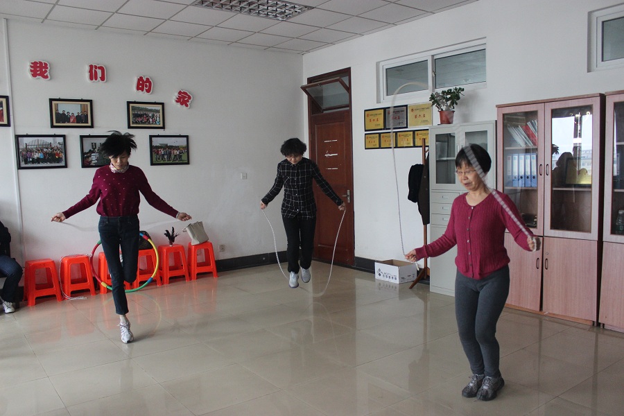 户外春风和煦、鸟语花香,我院“教工之家”里也是春意盎然。平日里辛勤工作的女教职工们纷纷放松身心,轻装上阵,踊跃参与跳绳、踢毽子、瑜伽式单足站立、摇呼啦圈等比赛项目中。各位女神精神抖擞,神采飞扬,部分男教职工们也兴致勃勃地来到活动现场观看比赛,为她们的精彩表现加油喝彩。活动现场欢声笑语此起彼伏,氛围轻松愉悦,妙趣横生,充分展示了我院女教职工团结、向上、开朗、活泼的魅力风采。