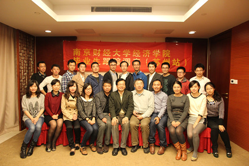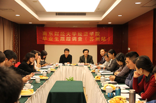 座谈会由徐山昌老师主持,胡书记首先就南京财经大学学生就业指导服务工作做了详细说明,注重强调面对就业问题,学校应该帮助学生积极拓宽就业渠道,多方位搜集就业信息,同时,毕业生应当坚定信心合理定位,充分把握就业自主权;随后李刚教授希望毕业生都应该对入校时的人生规划目标和目前的阶段性进展进行总结和思考;陈耀辉教授还鼓励毕业生对学院目前的教学、管理、服务等各项工作提出意见和建议。最后,毕业生代表们踊跃发言、各抒己见,有的谈起大学生活的感悟,有的对学院如何更细致地规划学生的学习和锻炼学生的能力等提出了好的建议,有的对院系毕业生工作存在的不足提出了客观中肯的意见和建议。