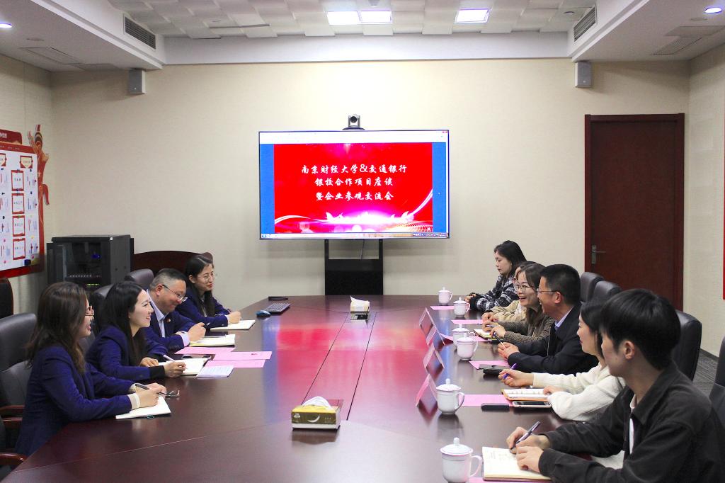 4月12日下午,我院党委书记张圣兵、党委副书记贾亦璞带队走访交通银行栖霞中心支行,开展访企拓岗活动。交通银行栖霞中心支行副行长徐昕、营业部主任张正章等主要负责人参加交流活动。