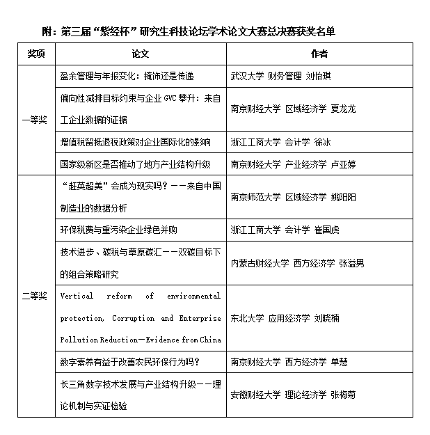 本次论文大赛自7月初起,面向全国各高校财经类专业在读硕士、博士研究生及高年级本科生征集稿件,总计收到来自武汉大学、东北大学、南京师范大学、南京航空航天大学、南京财经大学等全国数十所高校的符合要求的稿件130余篇。经多名专家匿名评审,共遴选出30篇优秀论文入围。其中总分排名1-10的同学进入总决赛,角逐一等奖4名和二等奖6名,排名11-30的同学获得三等奖。