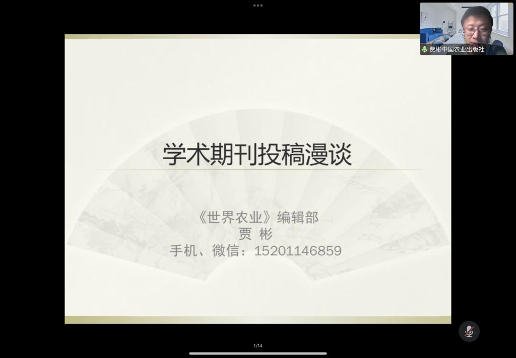9月28日晚,中国农业出版社期刊出版分社副社长、《世界农业》执行主编贾彬研究员在线上为金沙集团1862cc师生作了题为“学术论文写作技巧与投稿经验”的学术讲座。学院近两百位研究生和教师参加了本次讲座。讲座由我院院长朱红根教授主持。