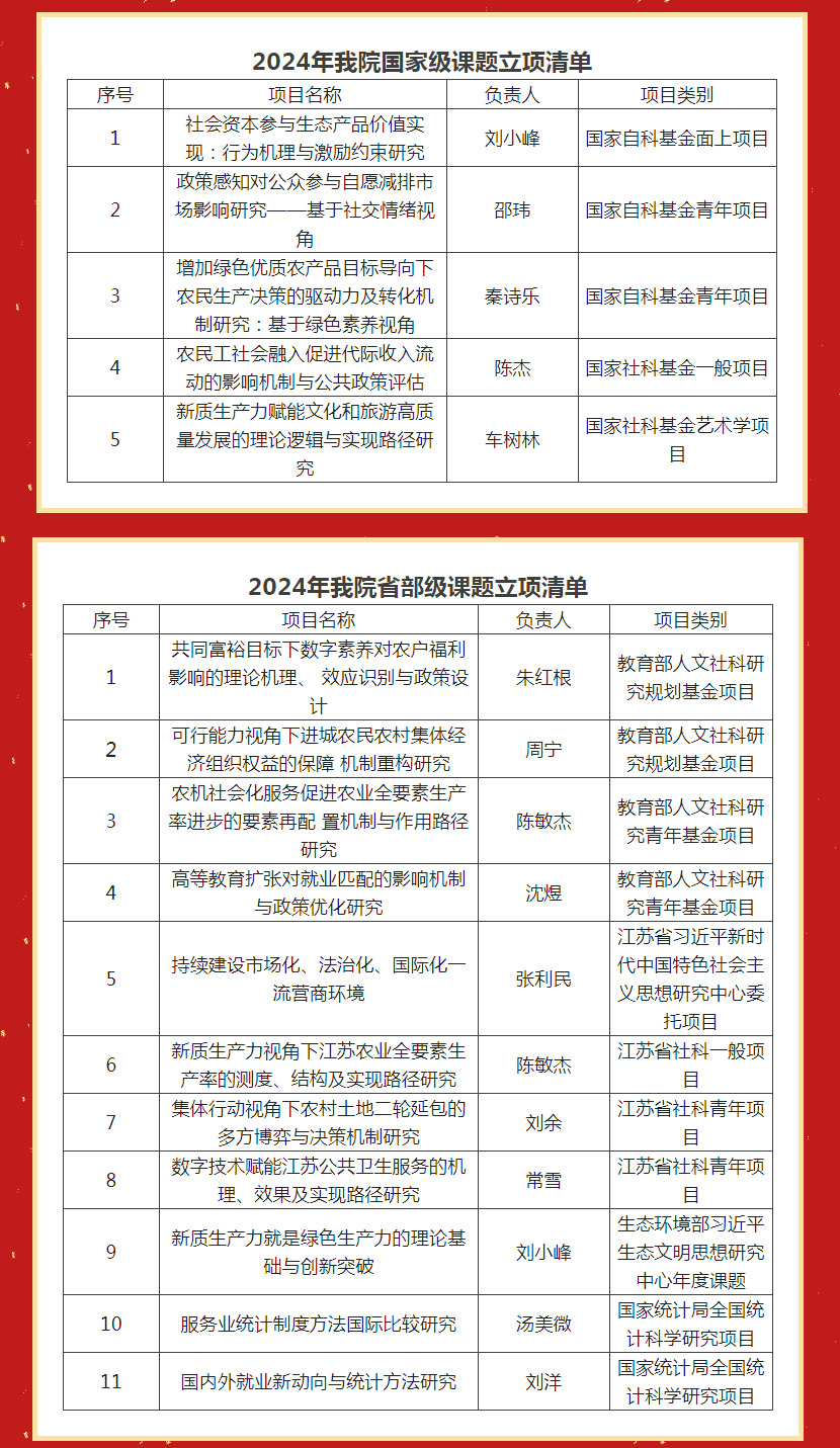 2024年我院共获得国家级课题资助5项,省部级课题资助11项,立项总数位于全校前列!